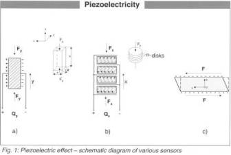 壓電傳感器由壓電材料和封裝材料組成。“壓電”的意思是當(dāng)對負載施加一個力時,傳感器將會產(chǎn)生同施加力成比例的電荷。天然石英晶體是非常理想的壓電材料,但現(xiàn)在石英晶體可以在高溫高壓下進行人工合成。其他壓電材料也有不同的特殊應(yīng)用。石英晶體在傳感器內(nèi)不同的排列將會產(chǎn)生不同的效果。這個效果可以通過石英晶體的不同切型來獲得。