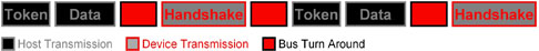 第二個(gè)問題是,在半雙工架構(gòu)下,任何指定的傳輸都必須先完成,下一個(gè)傳輸才能開始進(jìn)行。這表示接收器必須確認(rèn)接收到數(shù)據(jù),發(fā)射器在收到ACK之后,才會(huì)透過總線進(jìn)行下一個(gè)數(shù)據(jù)傳輸。圖4顯示USB 2.0的高層級(jí)OUT(從主機(jī)到周邊裝置)傳輸。