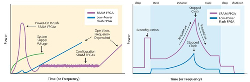 圖1 SRAM/Flash FPGA功率特性比較圖