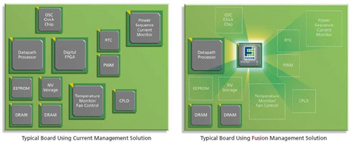 圖4 以混合信號(hào)FPGA進(jìn)一步取代眾多離散組件