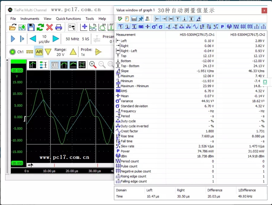 虛擬示波器多通道分析軟件自動(dòng)測(cè)量功能詳解