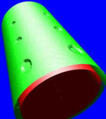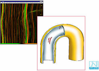 圖 1.6 顯示了這樣一個位置的圖,帶有壁厚測量的數(shù)據(jù)表示。所謂的“C 掃描”圖顯示綠色為標(biāo)稱壁厚,紅色為更薄的壁厚.