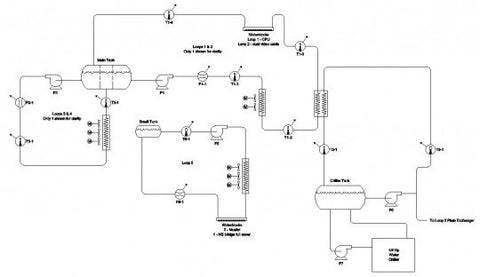 這個Goliath PC冷卻裝置運行在一個由管道、制冷、水箱和布線組成的復(fù)雜網(wǎng)絡(luò)上。冷水機和冷水箱泵由手動控制,其余由labjackU3-LV和DaqFactory控制。它是由一位客戶設(shè)計和建造的。