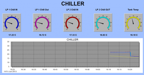 DAQ Factory中的一些自定義控制屏幕。下面的屏幕截圖顯示了冷卻器回路上的一些傳感器。