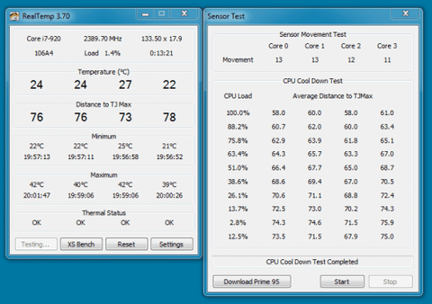 在大多數(shù)地方,水本身的溫度都低于環(huán)境溫度,CPU在23-24C左右閑置。在大量負(fù)載下(運行prime95),CPU最高可達(dá)41C。在大多數(shù)情況下,GPU卡是限制組件,因為它們的運行溫度比CPU高一點。