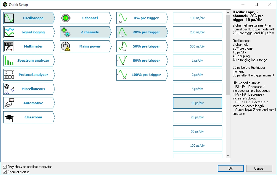 ?示波器 ?頻譜分析儀 ?數(shù)據(jù)記錄儀 ?萬用表 ?任意波形發(fā)生器 ?協(xié)議分析器 要在您自己的軟件或第三方軟件中使用 TiePie 工程儀器,請訪問軟件開發(fā)工具包二次開發(fā)頁面。 快速設(shè)置