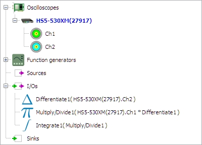 當兩個或四個測量通道不夠時,Handyscope 系列儀器提供了將多臺示波器組合并同步到一臺具有多個輸入通道的示波器的可能性。只需一根耦合電纜即可將多臺儀器組合成一臺多通道組合儀器。 多通道示波器軟件自動將單個儀器組合成一個大型組合示波器,該示波器具有許多輸入通道,這些通道完全同步采樣并可以在一個應(yīng)用程序中進行控制。你得到一臺示波器。 數(shù)學(xué)函數(shù)