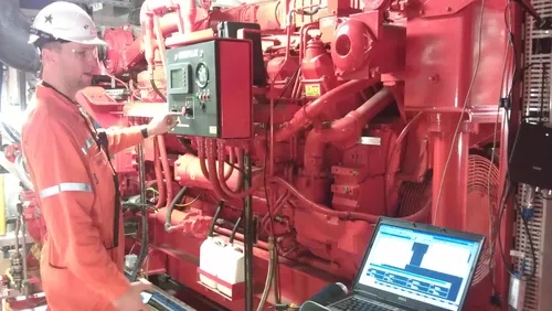 圖2:發(fā)動機(jī)和水泵。印度洋卡拉沙(澳大利亞)以北135公里處新建了一個近海天然氣加工廠。海上設(shè)施的基本安全措施包括可靠的消防水泵,在發(fā)生火災(zāi)時能夠提供足夠的水。新平臺配有兩臺機(jī)械式消防水泵。每個單位包括:卡特彼勒D3516C船用發(fā)動機(jī),16汽缸電子控制(ADAM3)柴油機(jī),交付2350千瓦,每小時1800轉(zhuǎn),由彭卡特提供。在緊急情況下,此引擎設(shè)置為"運(yùn)行到破壞"模式。只有緊急停車或超速才會關(guān)閉發(fā)動機(jī),所有其他的信號只會引起警報。4:7的變速箱一種能取代4600米的蘇爾澤泵 3 每小時水(1278升/秒),在1.2兆帕(12巴)壓力下,當(dāng)發(fā)動機(jī)以88%的功率運(yùn)行時一個與MODBUS和CAN總線(SAEJ1939)通信的TOPEC控制面板,一個操作觸摸屏和一個與平臺上的分布式控制系統(tǒng)(DCS)接口。問題說明在一個新平臺上使用的裝置遍布全球.當(dāng)建造一個平臺時,這些裝置或安裝部件被收集起來,并合并到一個大型的海上設(shè)施。在初始連接之后,調(diào)試階段開始,并測試不同安裝組件之間的所有鏈接是否正確。現(xiàn)在,這些鏈接由復(fù)雜的總線系統(tǒng)組成,如PROFIBUS、MODBUS、CAN總線、J1939、哈特或現(xiàn)場總線。在排除這些系統(tǒng)的故障時,數(shù)字萬用表不再足以診斷和確定問題。下面的例子將說明如何使用示波器來確定潛在的問題和原因。
