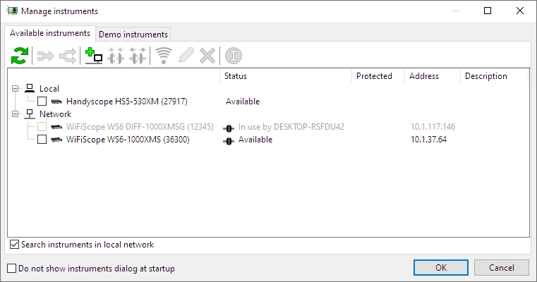 使用具有以太網(wǎng)連接(LAN、WiFi 或 WAN)的 Handyscope 系列示波器進行遠(yuǎn)程測量非常透明,就像以太網(wǎng)連接的儀器直接連接到 PC 一樣。多通道示波器軟件支持標(biāo)準(zhǔn)以太網(wǎng)儀器。示波器、頻譜分析儀、數(shù)據(jù)記錄器和電壓表的所有軟件和硬件功能仍然可以通過網(wǎng)絡(luò)使用。不需要有關(guān)網(wǎng)絡(luò)的特定知識。網(wǎng)絡(luò)儀器顯示在可用儀器的概述中。只需選擇網(wǎng)絡(luò)儀器即可開始測量。