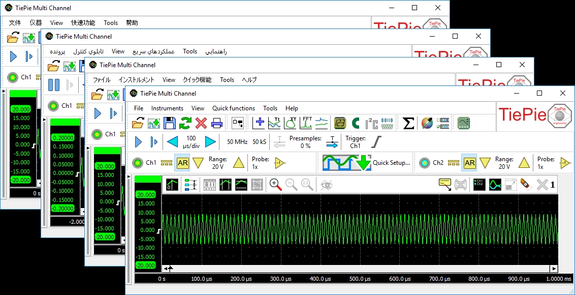 多通道示波器軟件 的用戶界面可以設(shè)置為多種不同的語言??梢允褂靡韵抡Z言: