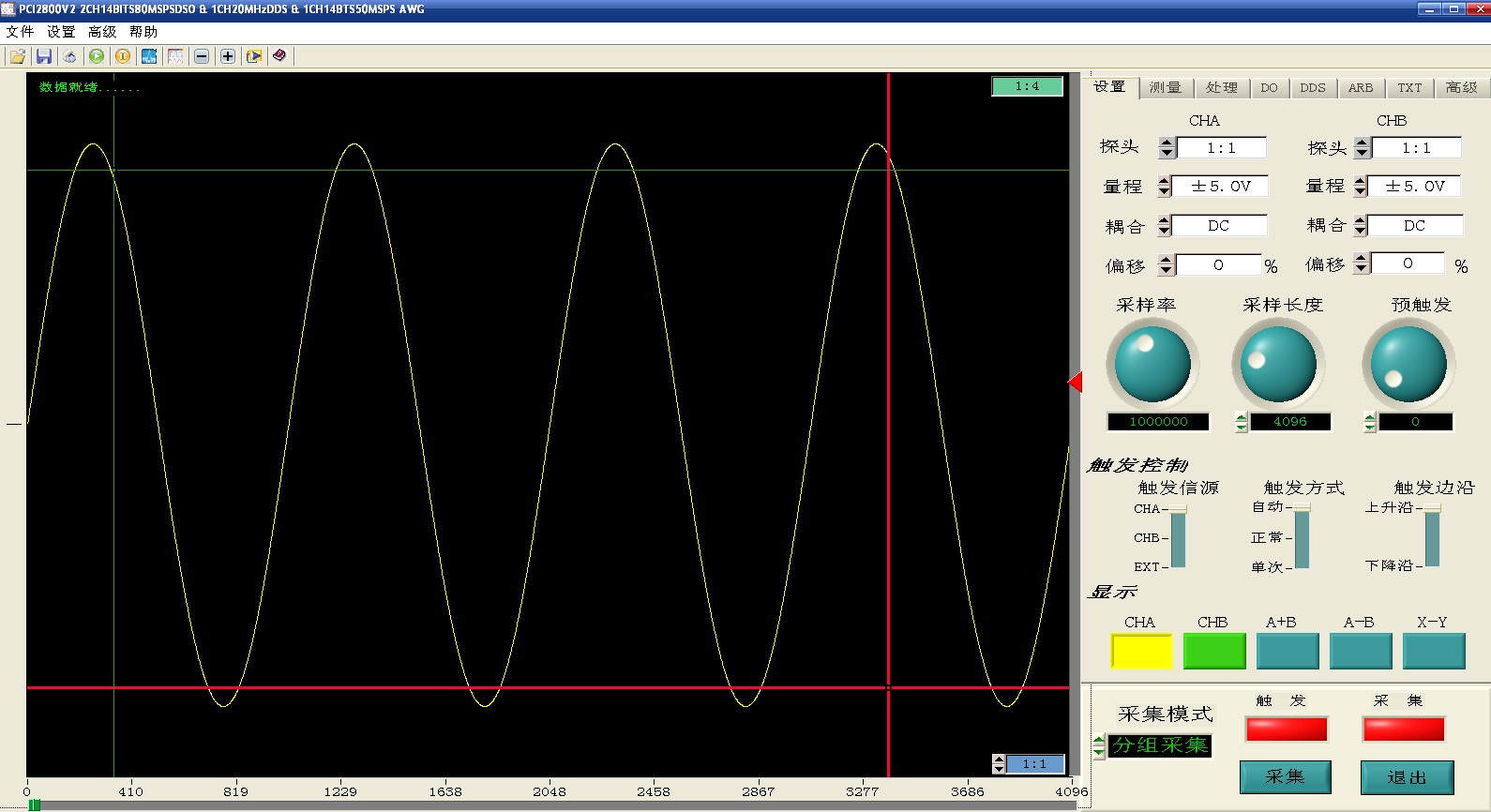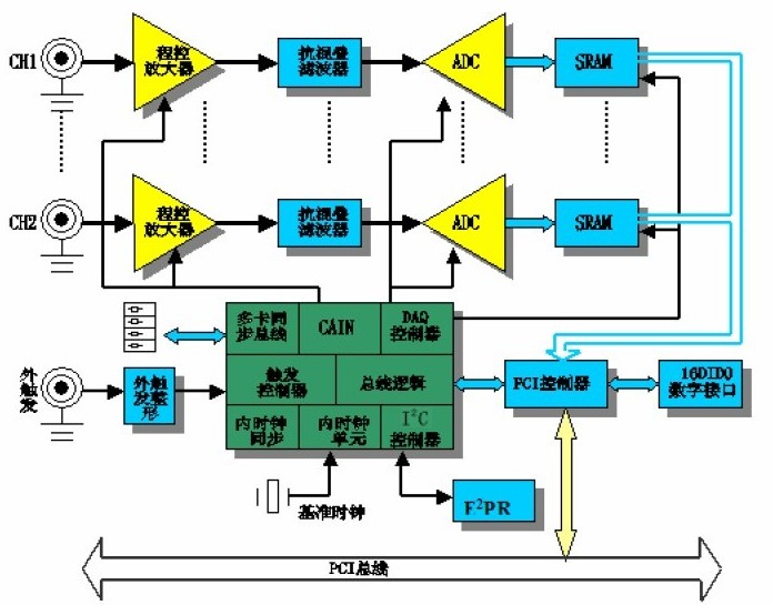 | PCI2800V2是PCI8200的升級版,實現(xiàn)了功能的完善和改進(jìn)。 PCI2800V2:示波+波形+掃頻 多功能卡 2個通道的并行數(shù)據(jù)采集最高采樣率80Msps,輸入電壓40V,板載1Msa/ch內(nèi)存; 1個通道的任意波形發(fā)生器, 1個通道的正弦波發(fā)生器, 輸出電壓峰值可到19.99V/50MHz 1個通道的+5V電壓程控輸出,具有過流保護(hù)功能; 1個通道的外觸發(fā)端口; 8個程控I/O輸出功能: PCI2800V2是一款集數(shù)據(jù)采集、信號產(chǎn)生、掃頻于一體的產(chǎn)品,繼承了PCI8200的優(yōu)點并進(jìn)一步實現(xiàn)功能的精細(xì)程度。將它插入計算機(jī)PCI槽上,再運行DsoView虛擬示波器軟件、性能優(yōu)良的數(shù)字存儲示波器。它具有數(shù)據(jù)采集、測量信號、過程監(jiān)測、多種觸發(fā)等功能,因此大量應(yīng)用于高速的數(shù)據(jù)采集系統(tǒng)、自動測試系統(tǒng)、自動控制系統(tǒng)。 PCI2800V2采集部分主要性能指標(biāo) | 最大采樣率: | 100Msps | | 單臺通道數(shù): | 并行雙通道 | | AD分辨率: | 14bits,系統(tǒng)精度:≤±0.3% | | 存儲容量: | 每通道最大1Msa/CH | | 量程: | ±100mV~±20V(共分9擋) | | 輸入方式: | BNC單端雙極性電壓輸入 | | 輸入阻抗: | 1MΩ;輸入電容≤25pF | | 輸入信號帶寬: | 0Hz~20MHz | | 通道間相位差: | ≤0.3°(0Hz~1MHz) | | 帶內(nèi)波動: | ≤±0.1Db(0Hz~300KHz) | | 時基范圍: | 100MHz~1KHz分15擋 | | 耦合方式: | AC/DC | | 觸發(fā)模式: | 正常、自動、單次 | | 觸發(fā)邊沿: | 上升、下降 | | 觸發(fā)模式: | 正常、自動、單次 | | 觸發(fā)通道: | CHA、CHB、EXT | | 通道間隔離度: | ≥80dB | | 尺寸: | 187mm×112mm | | 重量: | 0.2Kg | PCI2800V2 信號發(fā)生部分主要性能指標(biāo) | 參數(shù) | 任意波形部分(ARB) | 正弦波形部分(DDS掃頻) | | 波形頻率 | 0.1Hz(DC) ~5MHz | 0.1Hz~50MHz | | 頻率分辨率 | △F=0.02Hz | 0.02Hz | | DAC時鐘 | 0~80Msps | | | 通道數(shù) | 1CH | 1CH | | 波形長度 | 16Ksa | | | 垂直分辨率 | 14bits | 14bits | | 頻率穩(wěn)定度 | <10ppm | <10ppm | | 波形幅度 | 0~±10V | 0~±10V | | 波形個數(shù) | 循環(huán)輸出 | | | 輸出阻抗 | 50Ω,輸出電流50mA Vpeak=50mA | 50Ω,輸出電流50mA Vpeak=50mA | | 低通濾波 | 無 | 無 | | 直流精度 | ±0.3%(FS) | ±0.5%(FS) | | 交流精度 | ±0.3%(FS) | ±0.5%(FS) | | 諧波失真 | -65dB(<1KHz)、 -58dBc(100KHz) | | | 軟件平臺 | Windows2000/XP | | 二次開發(fā) | 提供常用開發(fā)平臺下的DEMO源代碼(Vc++、Cvi、Vb、LabView下例程及源代碼 | |