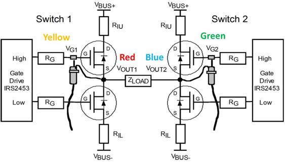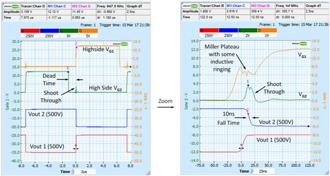 下面的全橋式系統(tǒng),柵極驅(qū)動(dòng)信號擺幅 500V,在 10ns 內(nèi)。