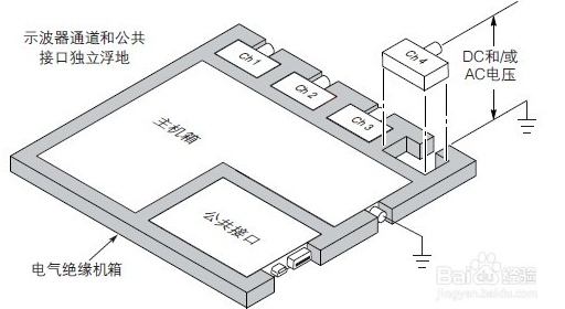 大多數(shù)傳統(tǒng)示波器把"信號參考"端子連接到保護(hù)接地系統(tǒng)上,通常稱為"接地".通過這種方式,所有應(yīng)用到示波器的信號或示波器提供的信號都會(huì)有一個(gè)公共連接點(diǎn)。這個(gè)公共連接點(diǎn)通常是示波器機(jī)箱,通過AC供電設(shè)備電源線中的第三條線接地,來保持在(或接近)零伏。這意味著每個(gè)輸入通道參考點(diǎn)都捆綁在一個(gè)接地參考源上。不應(yīng)該使用傳統(tǒng)無源探頭,直接在參考地電平的示波器上進(jìn)行浮地測量。視流經(jīng)參考引線的電流數(shù)量,傳統(tǒng)無源探頭會(huì)開始變熱;在電流足夠高時(shí),它會(huì)類似熔絲那樣熔化斷開。
