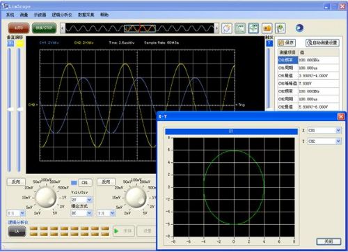 60M帶寬數(shù)字示波器。實(shí)時(shí)采樣率200MSa/s,全速USB2.0接口,支持X-Y方式顯示。