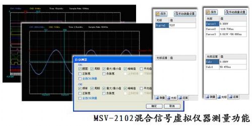MSV-2102多功能混合信號(hào)虛擬儀器由雙通道數(shù)字示波器和16+1通道邏輯分析儀組成,配合LimScope綜合測(cè)量平臺(tái),可以提供模擬信號(hào)測(cè)量、數(shù)字信號(hào)測(cè)量、頻譜分析、傳輸特性分析、總線分析、數(shù)字錄波等多種功能。
