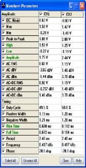 ●     數(shù)據(jù)讀出 :真有效值、分貝dBV、dBm、峰-峰值(P-P)、占空比、周期、頻率