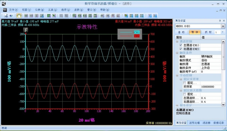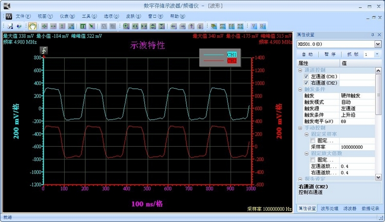 100MHz采樣;雙通道USB總線虛擬示波器