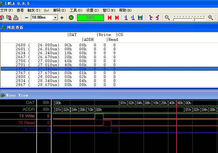 5,采用了變化量采集,結(jié)合時(shí)間位可變的壓縮模式,最大壓縮比例為(2的47次方):1,采用兩片IS61LV25616存儲芯片總?cè)萘?Mbits,能采集128K到256K個(gè)變化量,而跟采集時(shí)間無關(guān)!請于世界上任何一個(gè)支持變化量采集的邏輯分析儀進(jìn)行比較采集時(shí)間!