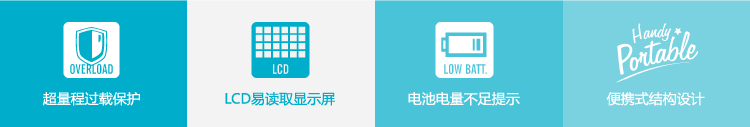 二極管測量 測試電路開路或二極管壓降大于2V ,液晶將顯示超載,測試壓降小于0.25V ,蜂鳴器將報警。
