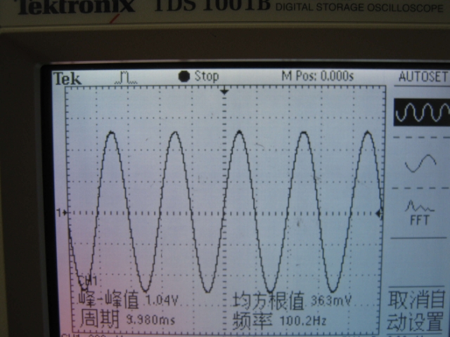 1、100Hz正弦波輸出波形