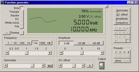 方波, 三角波, 正弦波, DC, 白噪聲和用戶自定義