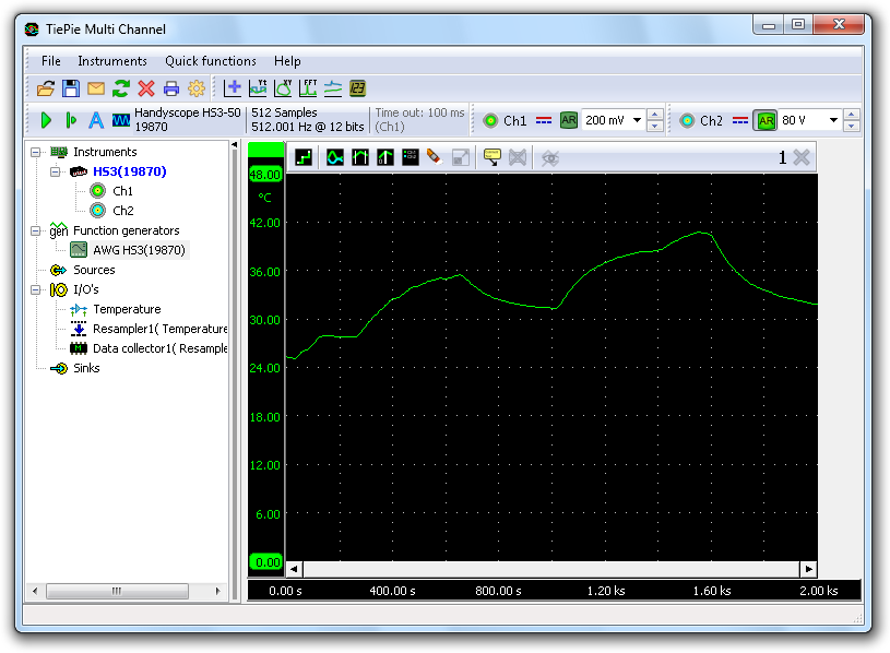 HS3、HS4記錄儀與與示波器的主要區(qū)別是,示波器測量預(yù)定的時(shí)間量和存儲所有測量數(shù)據(jù)在儀器內(nèi)部實(shí)現(xiàn)。當(dāng)測量數(shù)據(jù)時(shí),所有數(shù)據(jù)將被傳輸?shù)接?jì)算機(jī),然后被處理和顯示。之后,一個新的測量將開始。這種測量的長度跟儀器內(nèi)存有關(guān)。所以不能連續(xù)測量,每一個測量單元之間有間隔。